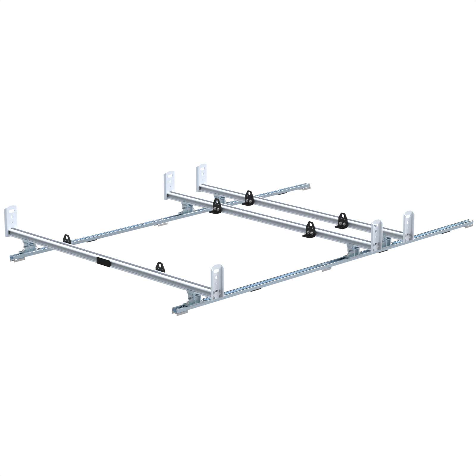 With three T5 extrusion cross bars, stainless steel hardware, four adjustable tie down rings, four end plates with integrated tie down points, powder coated white finish.