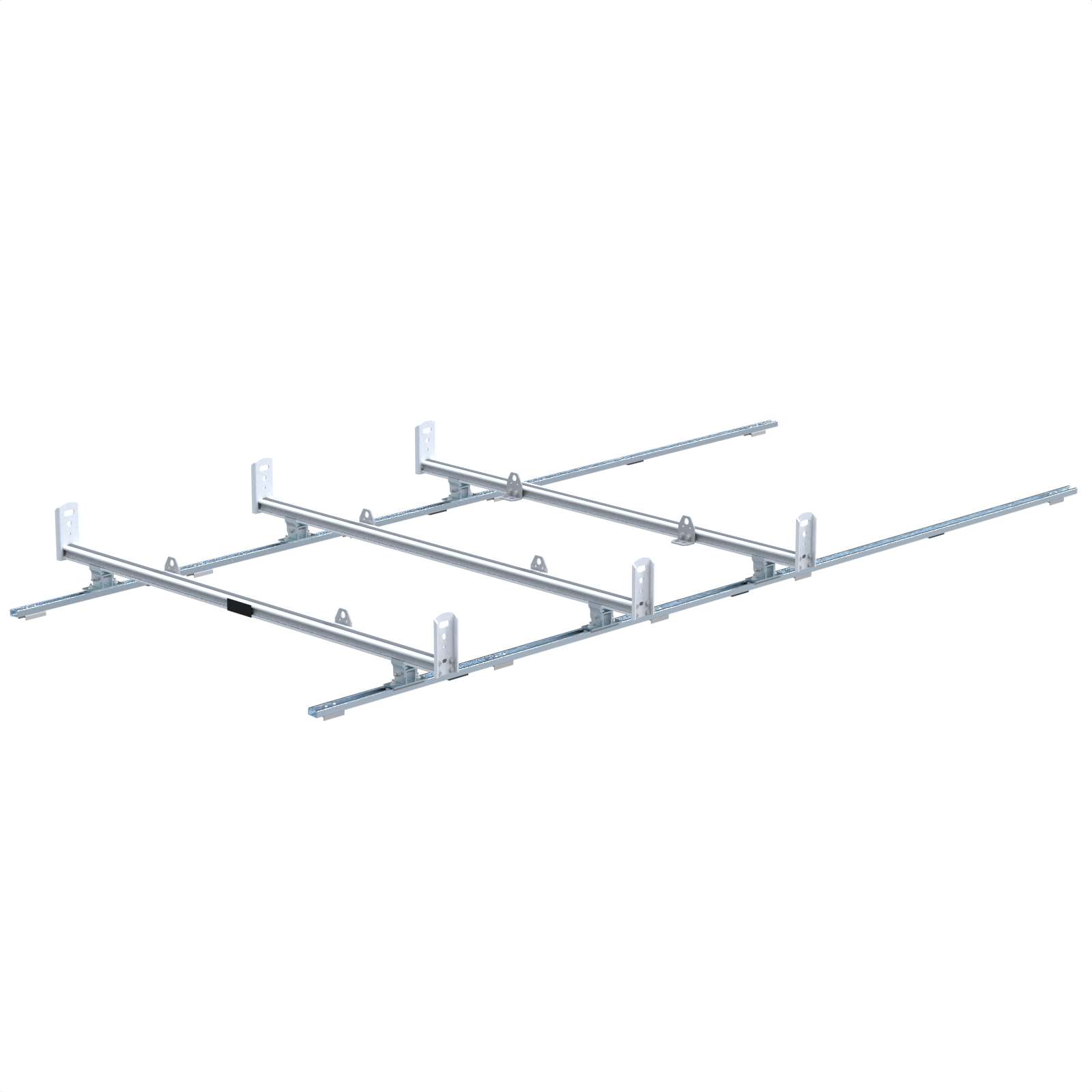 With three T5 extrusion cross bars, stainless steel hardware, four adjustable tie down rings, four end plates with integrated tie down points, powder coated white finish.